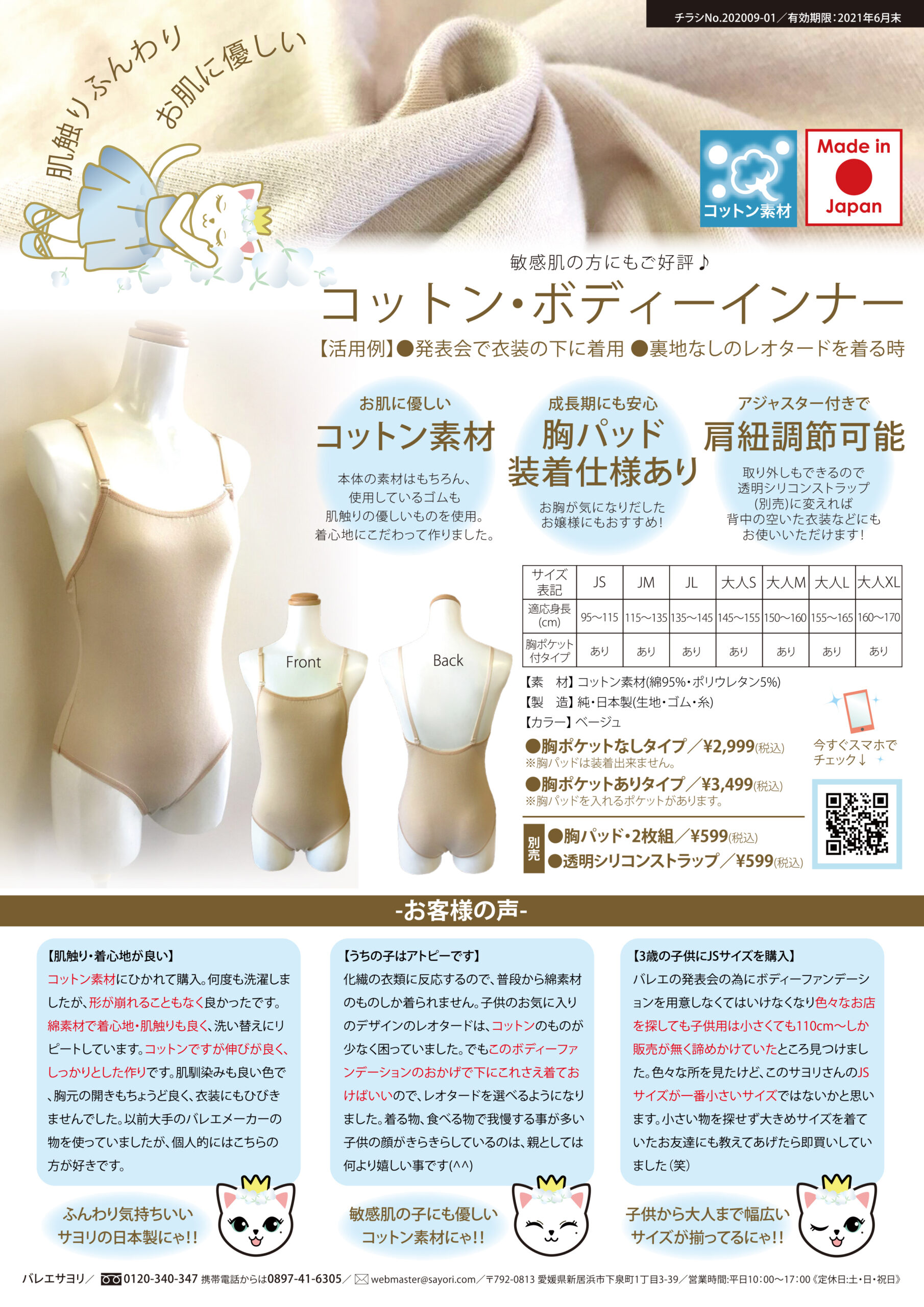 店頭配布および通販同梱を想定し、商品の特長である肌へのやさしさと着用時の安心感が直感的に伝わる構成を意識しています。